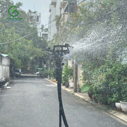 Vòi phun có cánh chỉnh thẳng dòng tích hợp cho tầm phun xa.