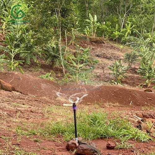 Để tránh đất bị khô, ta sẽ lắp các béc tưới sao cho nước tưới từ béc này sẽ phủ lên một phần của béc bên cạnh. Cách này giúp tưới đều cho toàn bộ vườn.