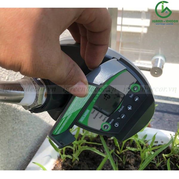 - Thời gian hiển thị: AM/PM. Cài đặt thời gian tưới nước từ 1 phút đến 12 giờ 59 phút.