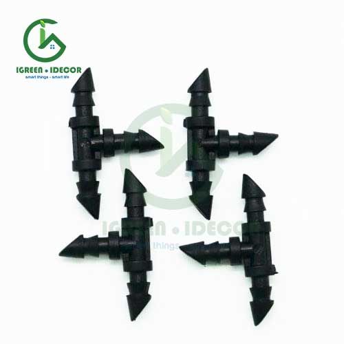- 10 chữ Tẻ đen 5mm gắn ống PE 5mm và 1 chân ren 21×5