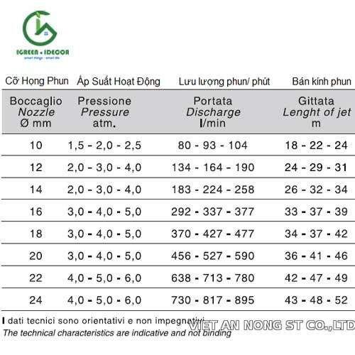 Áp suất: 1.5 - 6 bar (kg/cm2)
